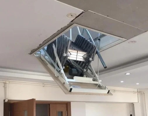 Alçak tavanlarda en ideal çözümlerden biri teleskopik çatı merdiveni modelleridir. Çatı merdivenleri katlanabilir ve iç içe geçmeli yapıları sayesinde çok az yer kaplar. Kullanılmadığı zaman tamamen kapanarak tavanda gizlenebilir. Üstelik hafif alüminyum gövdesi ile kolayca açılıp kapatılabilir. Montajı pratik olduğu gibi dar alanlar için oldukça işlevseldir.